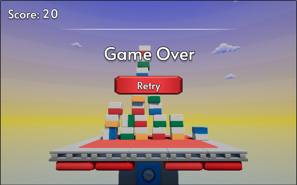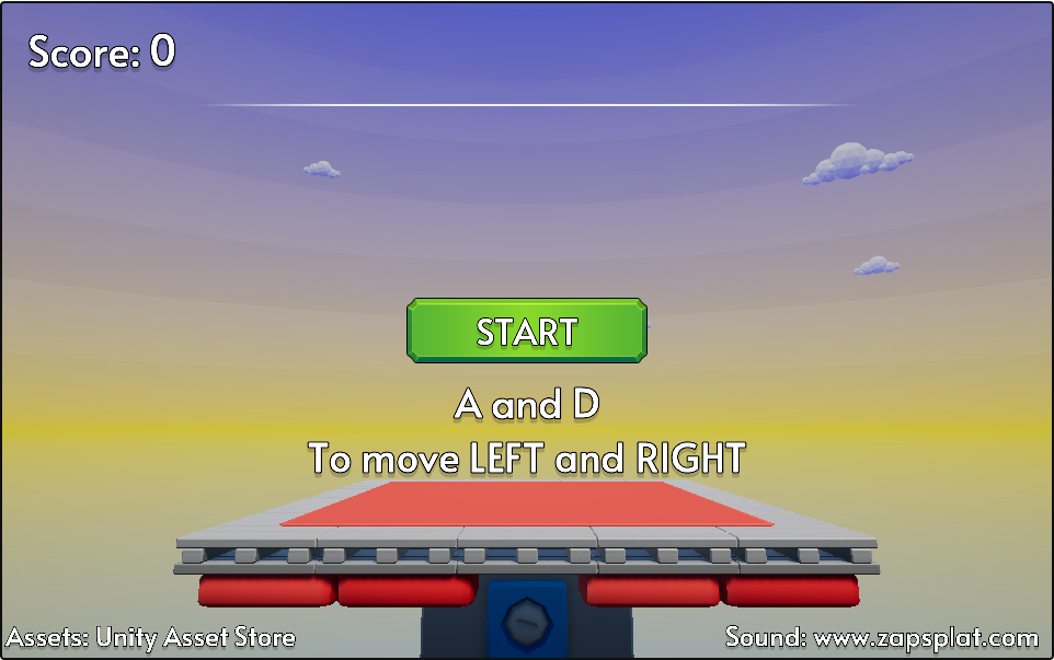 Stack as many blocks on the platform as you can. If you get too high, you lose, and if a block falls off, you lose.